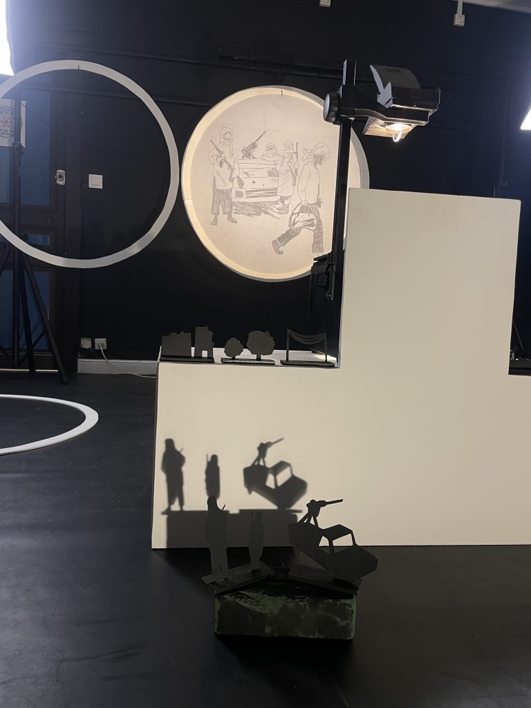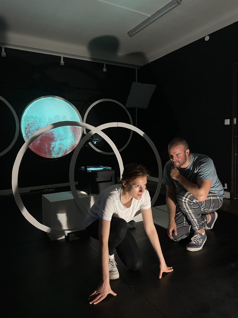 Scénographie en cours de conception et réalisation, le dispositif visuel sera marqué par des projections uniques grâce à des gélatines gravées à la pointe sèche, créant un univers sensible et immersif qui fait écho au parcours de Samia. Nous travaillons également avec des anneaux des Jeux Olympiques, intégrés à la scénographie.