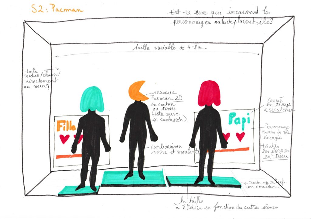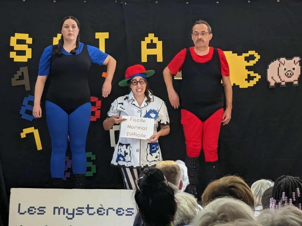 La scénographie adopte un univers en 2D, haut en couleur, évoquant l’esthétique des premiers jeux vidéo. Inspirée des références du rétrogaming, elle plonge les spectateurs dans une ambiance dynamique et ludique, où les décors se transforment au fil de l’aventure des personnages. Ce choix visuel renforce l’immersion et fait écho aux souvenirs des générations qui ont grandi avec ces références culturelles.